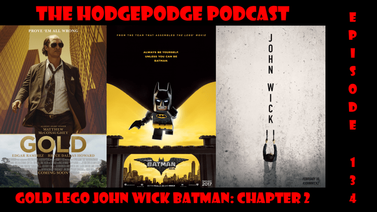 After a couple of weeks off, Doug and Dirty A return with Episode 134 of The Hodgepodge Podcast! The boys take time to discuss the Oscar nominations and then dive into the films: John Wick: Chapter 2, The LEGO Batman Movie, and Gold.