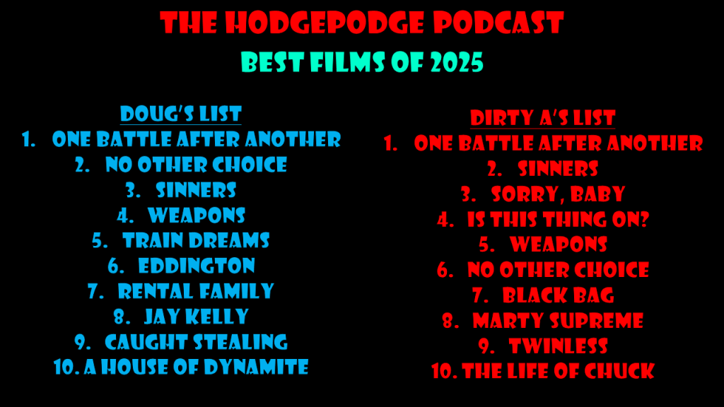 It’s finally time! Just in time for the Oscars, Doug and Dirty A reveal their picks for the Best Films of 2025! Did your favorites make their lists? Take a listen and find out!