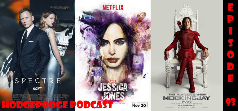 Doug and Dirty A are back with Episode 93 of The Hodgepodge Podcast! In this episode, they welcome back friend of the show author Matt King to discuss the latest James Bond film, Spectre, as well as the final Hunger Games movie, and the new Netflix series, Marvel’s Jessica Jones. Before that, though, they take time to run down the first trailer from Captain America: Civil War. Continue reading