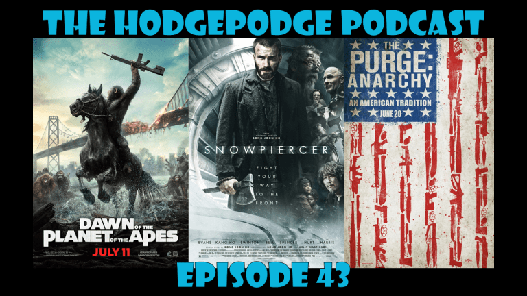Episode 43 of The Hodgepodge Podcast is a Post-Apocalyptic Extravaganza, as Doug and Dirty A discuss two fantastic films in Dawn of the Planet of the Apes and Snowpiercer and an early look at the not-so-great sequel to The Purge. Okay, the world of The Purge is not post-apocalyptic, but you may wish for the Apocalypse while watching it. Take a listen!